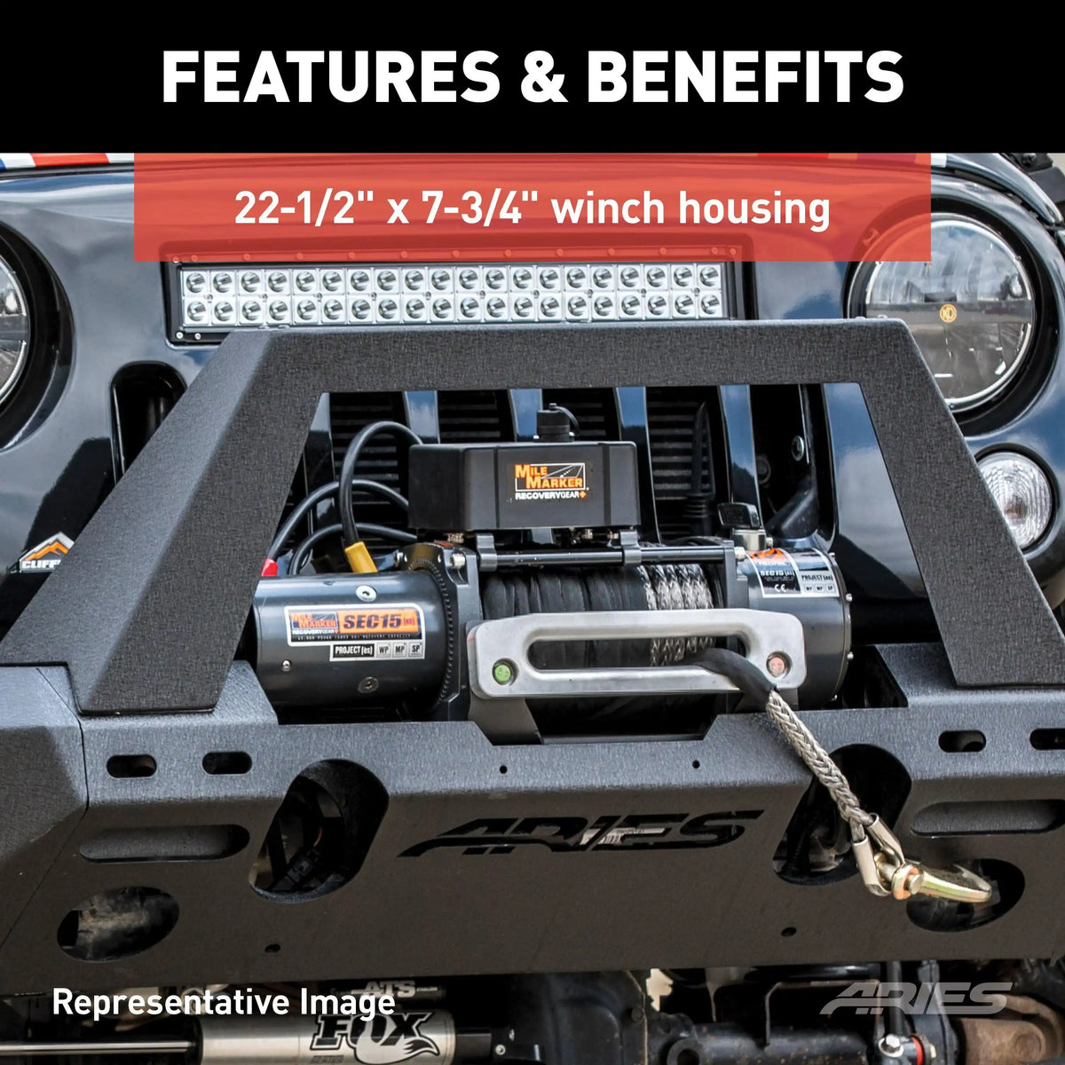 ARIES 2082093 - TrailChaser Jeep Wrangler JL, Gladiator Aluminum Front Bumper (Option 2)