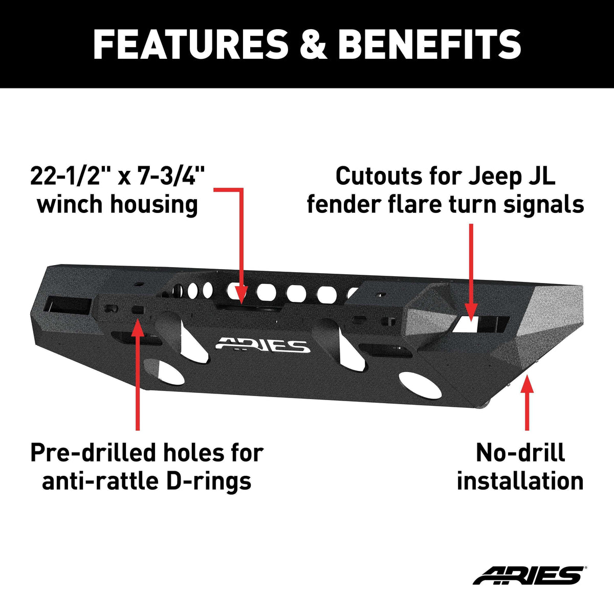 ARIES 2082076 - TrailChaser Jeep Wrangler JL, Gladiator Aluminum Front Bumper (Option 7)