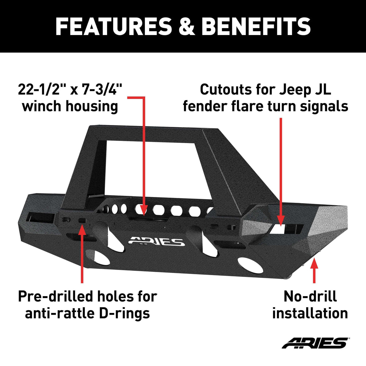 ARIES 2082099 - TrailChaser Jeep Wrangler JL, Gladiator Aluminum Front Bumper (Option 9)