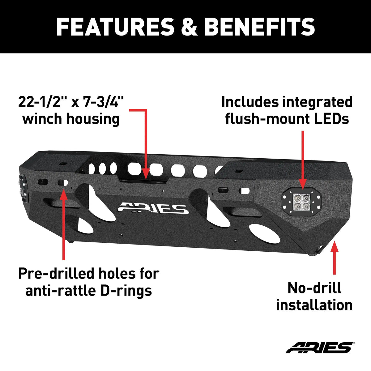 ARIES 2082071 - TrailChaser Jeep Wrangler JL, Gladiator Steel Front Bumper (Option 5)
