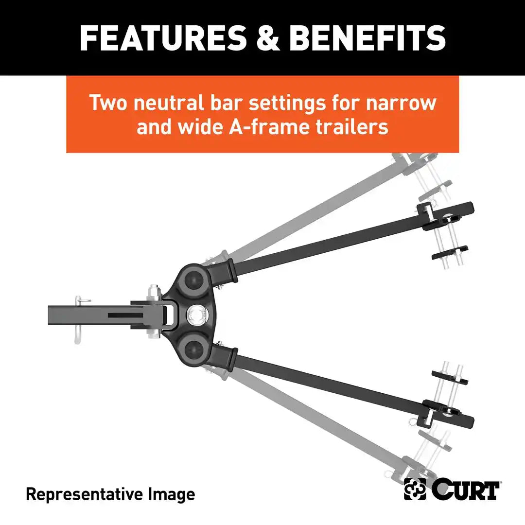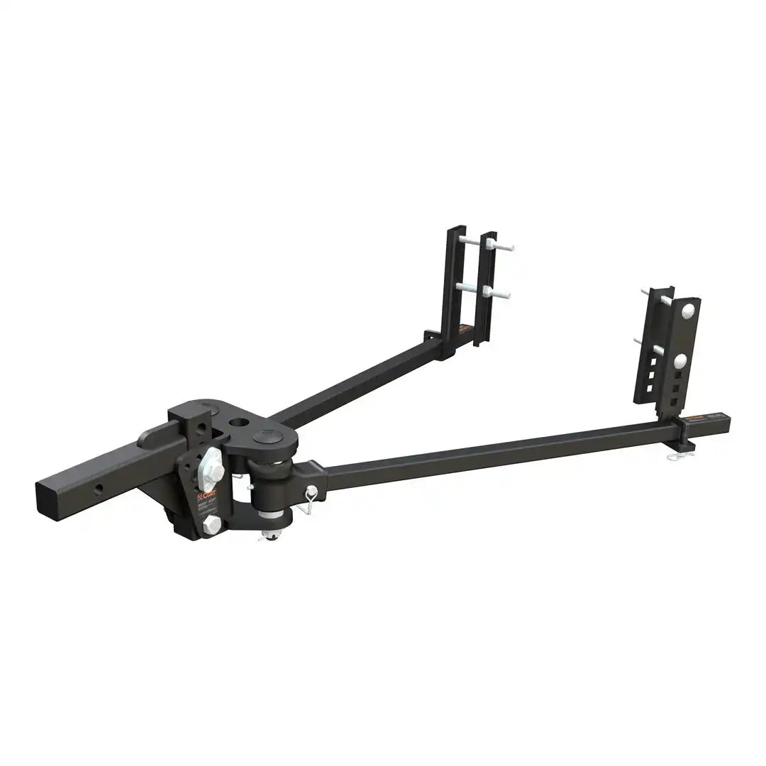While many weight distribution hitches are made to be compatible with a sway control attachment, the CURT TruTrack is an advanced WD system that integrates the sway control function into the design of the hitch. It combines precise weight distributing with active sway control to deliver the smoothest, safest ride possible. This, coupled with the easiest setup in the industry, truly makes the TruTrack unparalleled in its class. Like all WD hitches, the TruTrack 4P uses a pair of spring bars to leverage the trailer tongue weight and spread it across all axles of the vehicle-trailer combination. However, instead of using spring bar chains, the TruTrack connects to the trailer frame using heavy-duty, adjustable support brackets that hold the spring bars in place laterally and vertically. While regular spring bars angle from side to side, the integrated sway control arms resist this movement and keep the trailer better aligned. The TruTrack also features a unique spring and cam system that builds up pressure to actively stop sway and then relaxes to make smooth turns. The hardened components are less subject to wear and last longer than competitor models. Setting up the light-duty TruTrack WD hitch is faster and easier. While other WDs use washers and blind guesswork to find the proper tilt, the TruTrack employs interlocking nuts and six preset holes to provide specific angles of tilt and a simpler adjustment method. Unlike most WD hitches that require you to partially disassemble the hitch head to make adjustments, the interlocking nuts can easily be accessed on the outside of the head, making installation fast and adjustment easy (NOTE: Trailer ball not included). In addition to its integrated sway control and easy setup, the CURT TruTrack offers the same great quality as our other WD hitches, making it the perfect choice for campers, livestock trailers, car haulers and other heavy-duty trailers.