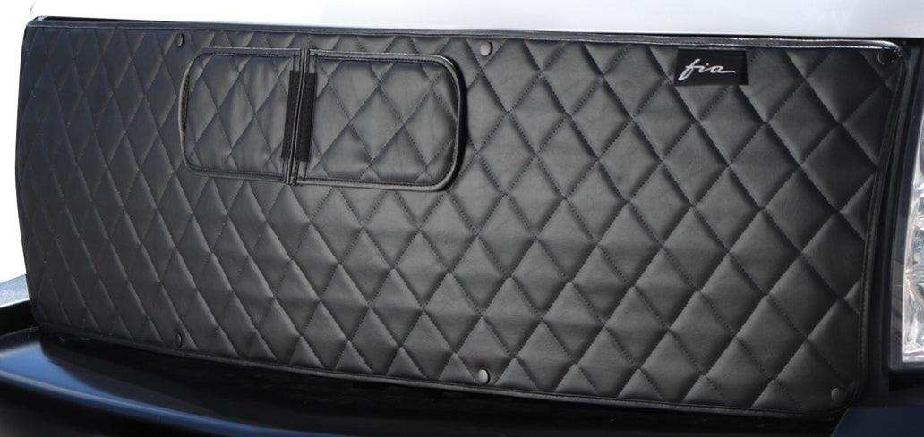 WF920 Series custom fit winter fronts and bug screens are designed to provide benefits in both winter and summer. Made from all weather heavy duty quilted vinyl, the winter front promotes better fuel economy. It aids in providing faster engine warm up and interior heat. It keeps diesel engines at optimal operating temperatures with adjustable air flow doors. In the spring and summer, the bug screen, made from heavy duty tear resistent mesh, protects the rad and grille from bugs, stones and debris. The winter front and bug screen are interchangeable using Fia's patented Stick A Stud no drill installation system. Using a 3M adhesive backed stud fastener, just peel and stick to surface and snap on either the winter front or bug screen. No tools are required for installation. Optional screw on hardware kit included.